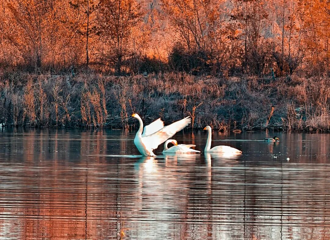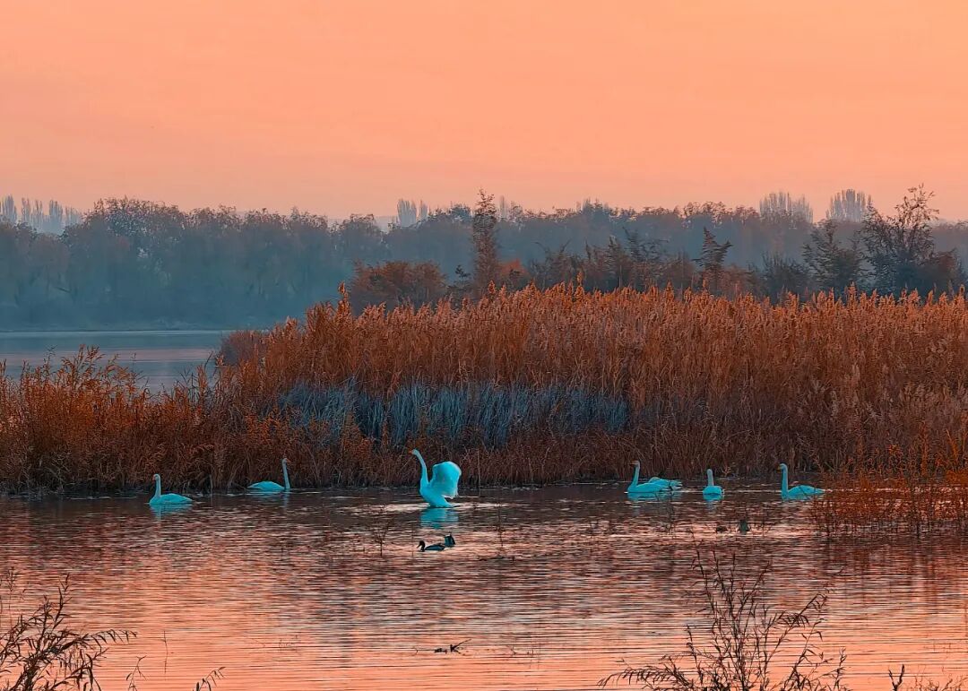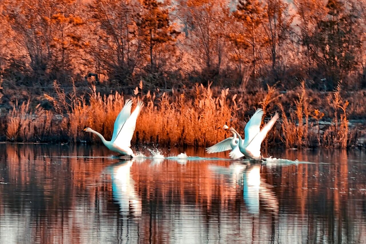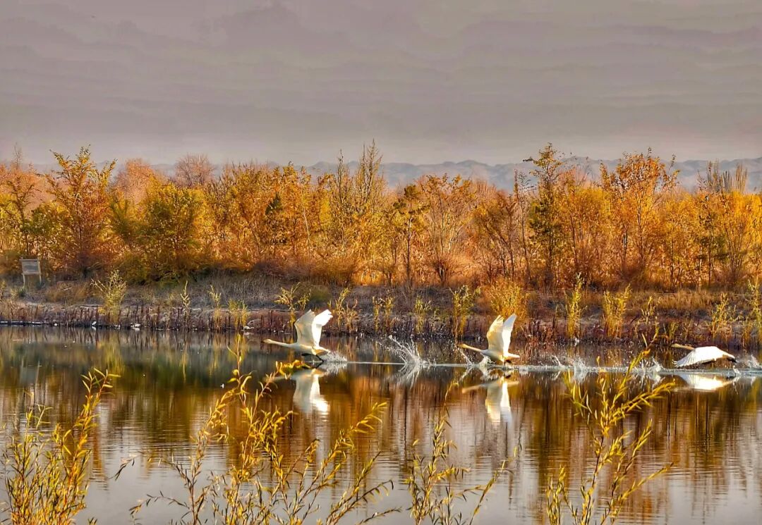 黑河湿地天鹅飞