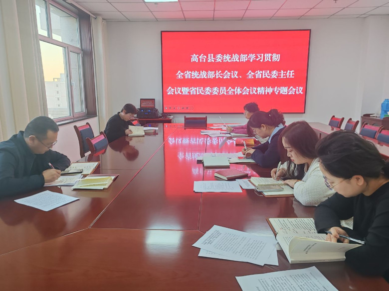 2月10日,高台县委统战部召开专题会议,传达学习全省统战部长会议及全省民委主任会议暨省民委委员全体会议精神,深度谋划2025年目标任务,研究贯彻落实措施。县委统战部全体领导干部参加会议。