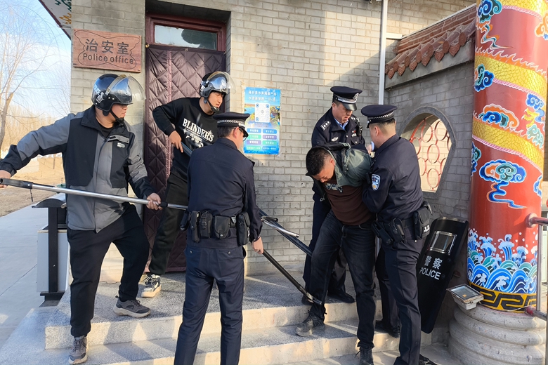 现场模拟恐怖分子欲抢夺财物砍伤游客和可疑人员携带疑似危险物品欲破坏水利设施两种场景,值班人员发现异常,第一时间拉响警报,应急小组快速反应,按照分工展开行动,封锁现场、疏散群众,设置警戒区域,与“暴恐分子”进行对峙周旋,在民警赶到后紧密配合,协同行动,成功制服“暴恐分子”。随后,医护人员快速入场,对受伤人员进行紧急救治和转运。整个演练过程紧张有序,各环节紧密衔接,各部门配合默契。