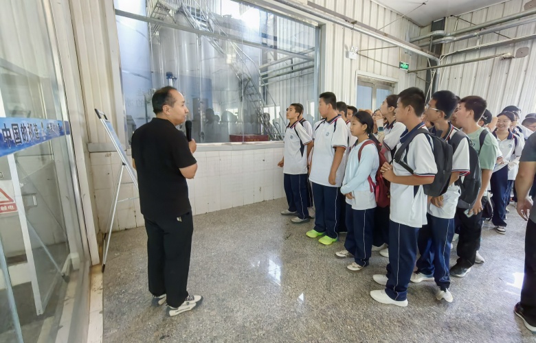 走进甘肃祁连葡萄酒业有限责任公司灌装车间,引进的法国、意大利灌装线、压榨机、检测仪器等设备,吸引同学们驻足参观,通过聆听工作人员的讲解,大家了解了葡萄酒从原料到成品的每一道工序及制作流程。在地下酒窖,整齐排列的800个进口橡木桶,以及角落里挂满三面墙壁的荣誉奖状和发明专利证书令同学们为之震撼。当听到工作人员介绍“公司与中国农业大学合作,研制的冰白葡萄酒、冰红葡萄酒被北京市科学技术委员会鉴定,填补了国内空白,工艺技术达到国际领先水平”时,同学们不约而同地发出阵阵赞叹。