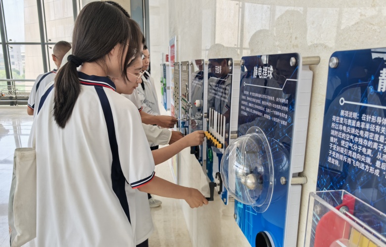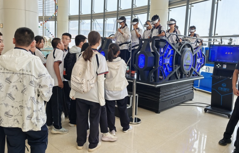 在县科技馆,同学们参观了“科学探索”“科技生活”“创新未来”等主题展厅。他们动手操作电磁感应实验装置,看着金属球在电流作用下奇妙运动,争相探究背后的科学原理;“浩瀚星空”VR展区中,沉浸式投影将宇宙的浩瀚展现得淋漓尽致,同学们仿佛置身于银河系,近距离“触摸”行星,激发了他们对航天科技的向往;4D动感影院播放的科普影片,结合座椅震动等特效,让大家在惊险刺激中感受科学的魅力,进一步点燃了对科学的探索热情。