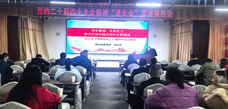 11月27日,高台县工信商务局在甘肃表是文化传播集团有限公司开展党的二十届四中全会精神进企业专题宣讲活动,以精准宣讲赋能企业高质量发展,推动党的二十届四中全会精神在基层一线落地生根、开花结果。全县重点工业企业、商贸流通企业负责人及职工代表60余人参加宣讲活动。