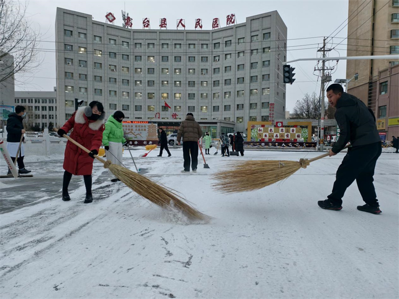 近日,受强冷空气影响,高台县迎来今冬首场大范围降雪。皑皑白雪装点大地,但也给群众就医出行带来诸多不便。为保障医疗服务正常有序开展,高台县人民医院迅速响应,以“雪停人动、人动雪净”为目标,组织全院干部职工开展扫雪除冰工作,用实干为患者开辟出一条安全畅通的“温暖就医通道”。这场风雪中的坚守,正是医院深化平安医院建设、筑牢就医安全防线的生动实践。
