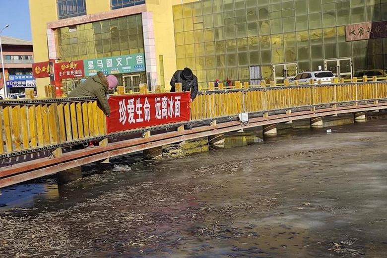 冬季来临,气温下降,县域内的水面相继结冰,连日来,县城市园林绿化局采取悬挂宣传牌、播放警示语等方式,提醒广大群众冰面危险,切勿靠近,切实保障群众的生命安全。