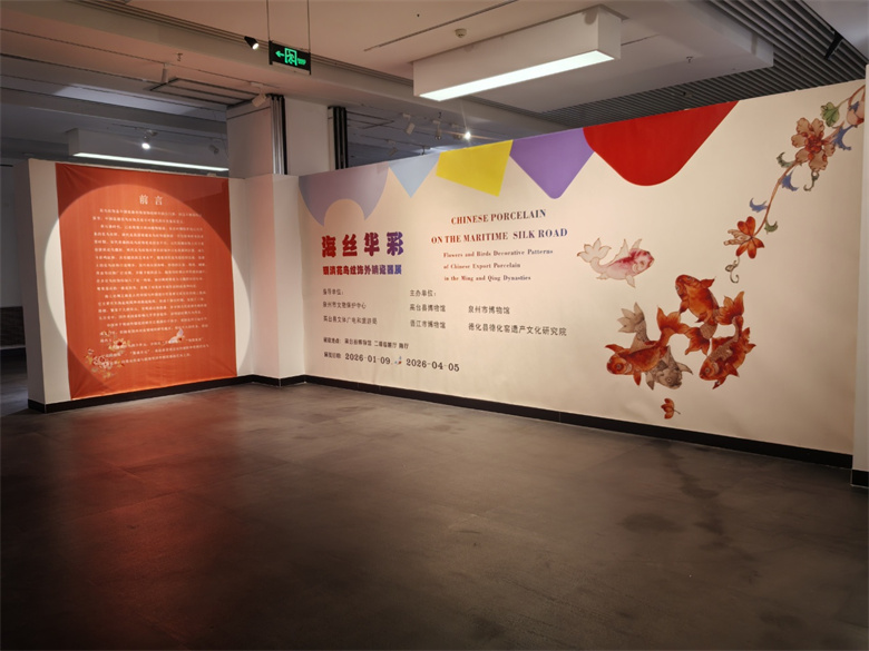 本次展览围绕明清时期外销瓷器的花鸟纹饰艺术主题,精选展出来自四家单位的各类瓷器珍品114件(套),涵盖克拉克瓷、广彩瓷、青花瓷等多个重要类别。展览以“芳溢四海”“锦簇寓意”“花鸟栩栩”“繁盛多元”四个单元展开。“芳溢四海”单元呈现外销瓷器的贸易网络与流通路径,展现其在跨洋贸易中的重要地位;“锦簇寓意”单元聚焦花鸟纹饰的文化内涵,阐释其中蕴含的吉祥寓意与审美特征;“花鸟栩栩”单元展示外销瓷器装饰工艺的发展与演变,体现中西艺术风格的融合创新;“繁盛多元”单元通过外销瓷器在世界各地的传播与影响,呈现其在推动文明交流互鉴中的历史作用。