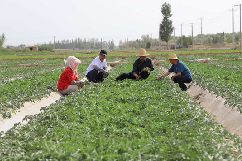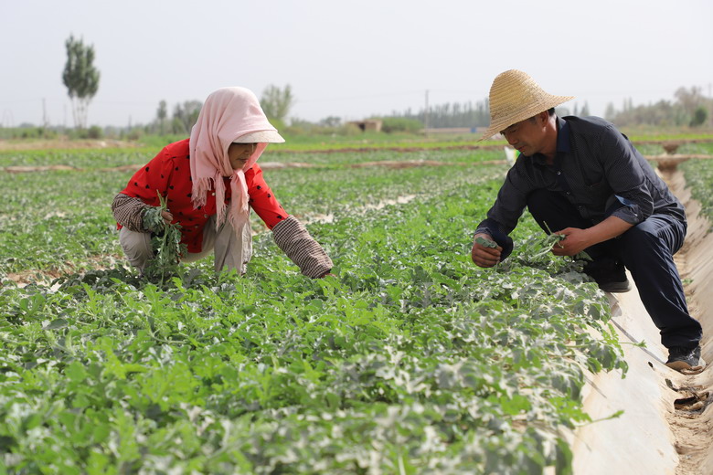 眼下,正是西瓜管护和膨大的关键期,宣化镇东庄村的瓜农们趁着晴好天气,为“东庄西甜瓜”蔬果打条,掐头整秧,为今年的丰产增收打好基础。