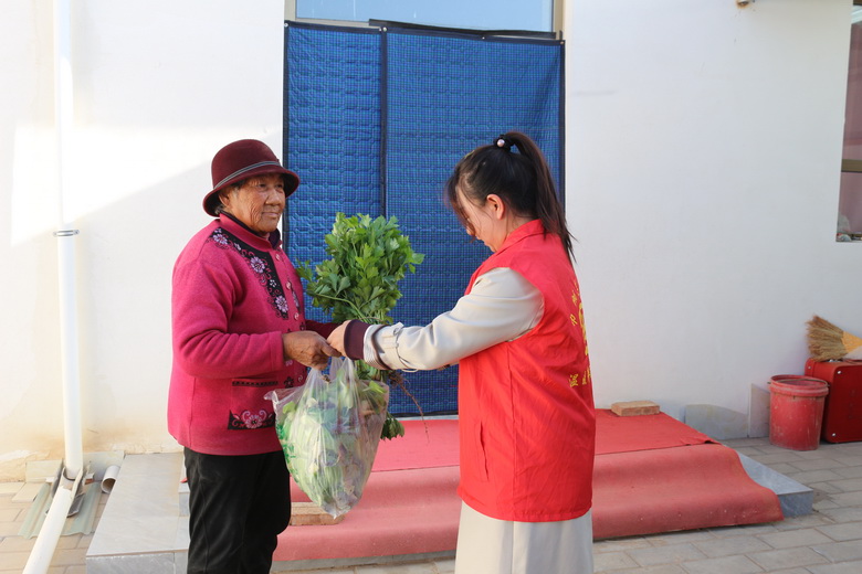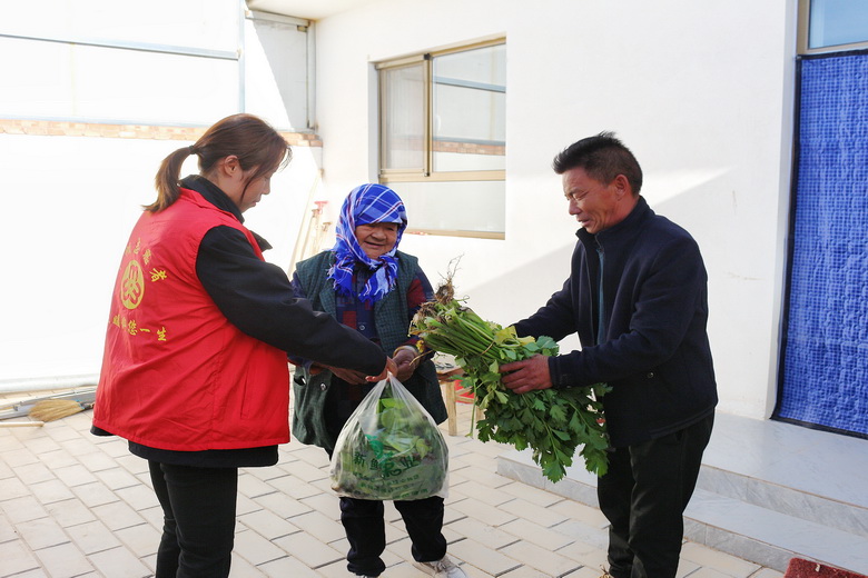 为共享丰收喜悦让致富红利惠及千家万户,该村对棚内种植的部分蔬菜进行打包,向村内及周边留守老人、儿童及困难家庭发放“暖心菜包”。