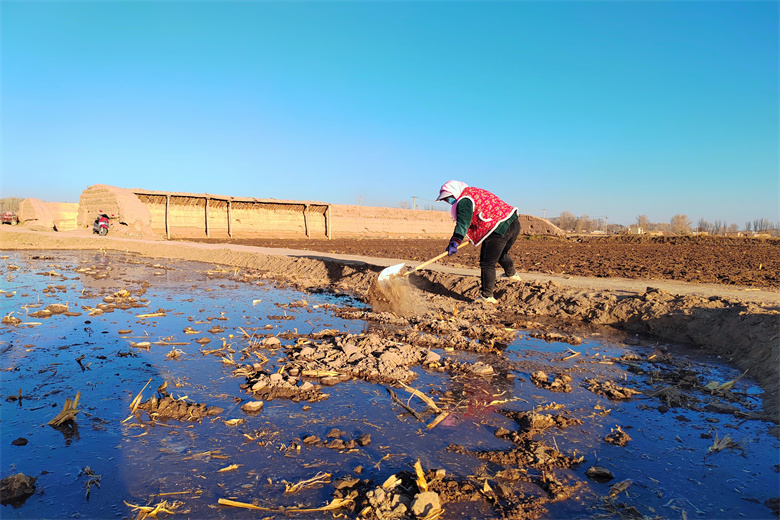 “今年的水量也还行,每年都是水管所通知村上,村上再通知我们村民,我们也就能及时的把这冬灌的工作做好。希望来年我们能够实现大丰收。”看着汩汩渠水流进自己的庄稼地里,这让王菊琴对明年的丰收充满了期待。