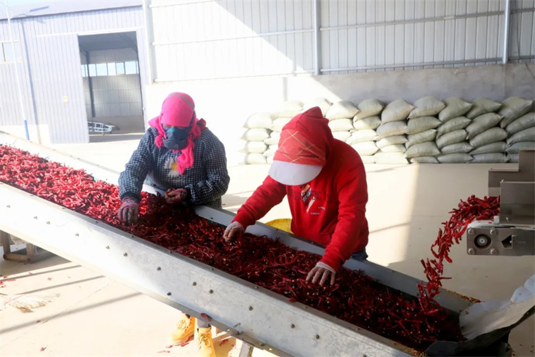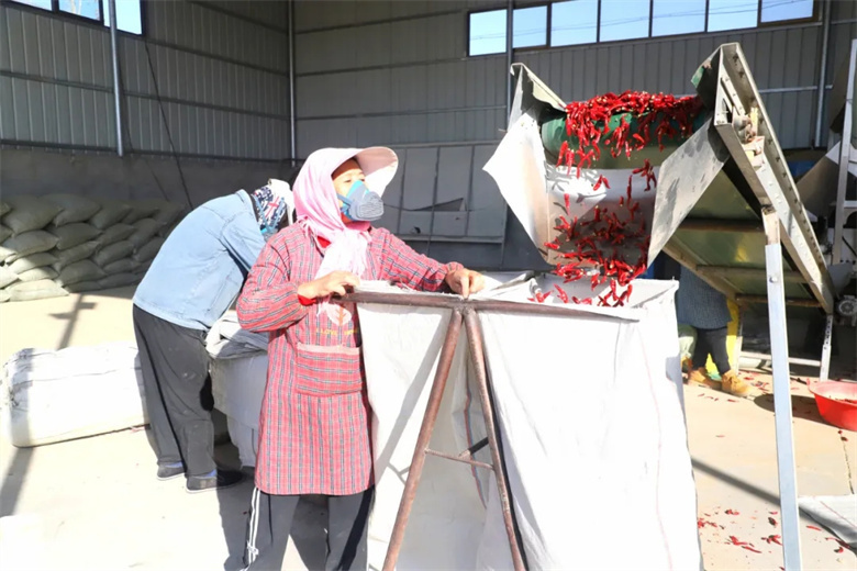 辣椒加工厂的建成还能吸纳当地群众就近务工。“最近在家闲着也是闲着,还不如在厂里打打零工,每天有个100多元的收入,挺好的”在厂里工作的骆驼城村村民盛彩玲笑着说。