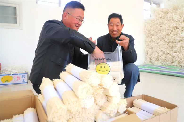 建康村“味之源”土豆粉条和手工挂面都选用优质原材料,不含任何防腐剂,采用传统工艺制作,制作出的粉条、挂面天然健康、筋道爽滑、唇齿留香,颇受消费者青睐。“前两天就买了10斤土豆粉条,口感味道都不错,今天过来再买点挂面回去尝尝。”前来购买挂面的建康村村民罗金玉说。