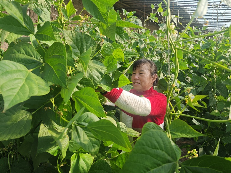 “我家经营温室大棚很多年了,主要种植反季蔬菜,收益也比较好。今年,我们主要种的是架豆、西红柿,长势很好,目前已经成熟上市,供应冬季市场,一棚预计能收入5万元左右。”成号村村民李秀琴说。