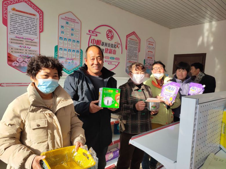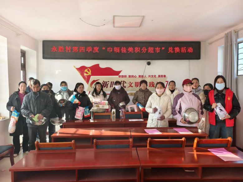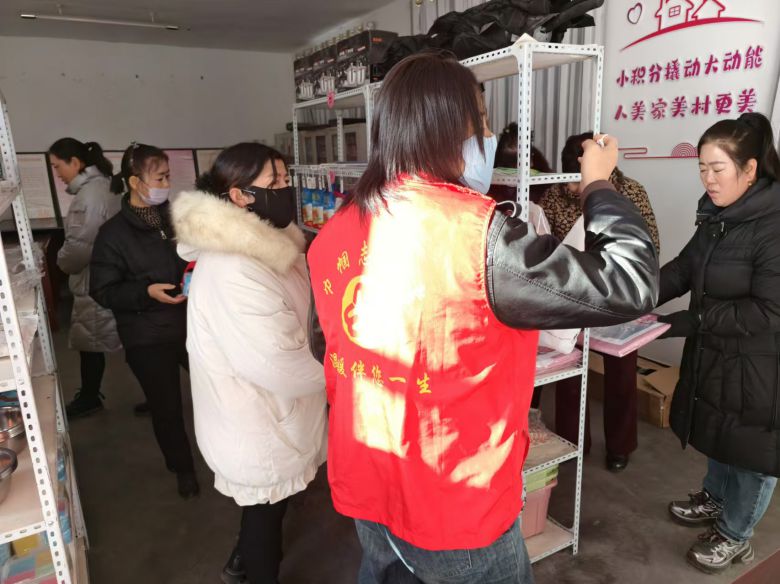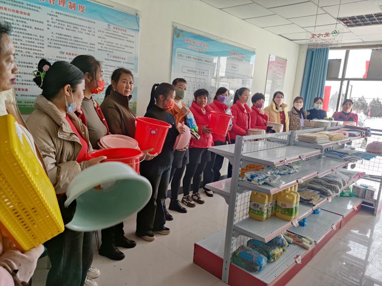 在各村“巾帼家美”积分超市兑换现场,大家热情高涨,只见大家一边浏览着货架上标注积分的物品,一边和身边的朋友进行交谈“你获得的积分能够换些什么?”“在自己闲暇时余参加志愿活动还能够领到物品,我下次还积极参加”等等话语,在工作人员的带领下,依次进行相对应物品的兑换。有的是一盒香皂、一桶洗洁精、一个拖把、一个垃圾桶,物品虽小,但领到积分物品后的每个人,脸上都洋溢着幸福的笑容。