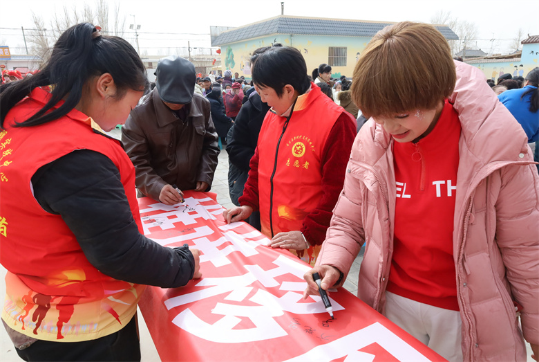 移风易俗我先行,文明新风共践行。在红联村村委会,一场移风易俗签字活动吸引了众多群众参与。志愿者们向居民发放移风易俗倡议书,宣传文明节俭操办婚丧嫁娶、抵制高价彩礼、反对铺张浪费等新风尚理念。现场设置了签名横幅,群众纷纷签名,表达对移风易俗的支持与承诺,共同为营造文明和谐的社会氛围贡献力量。