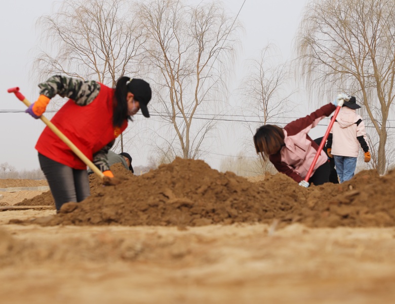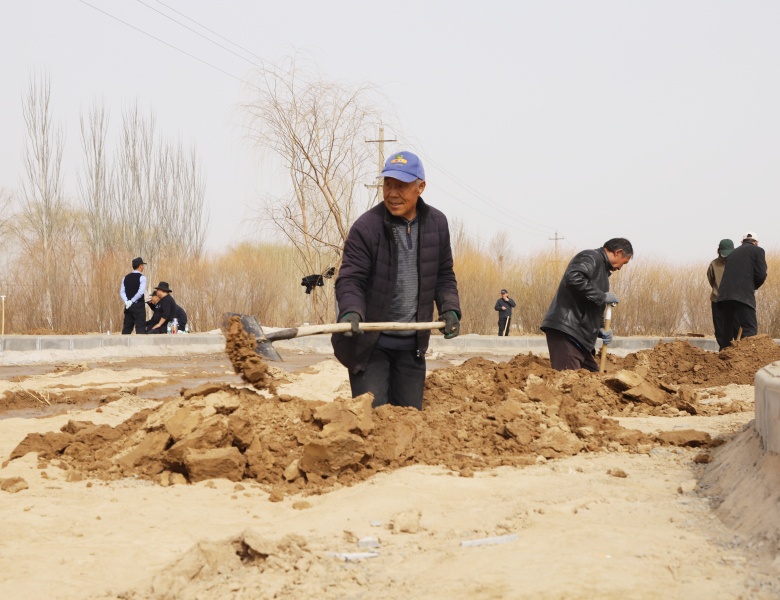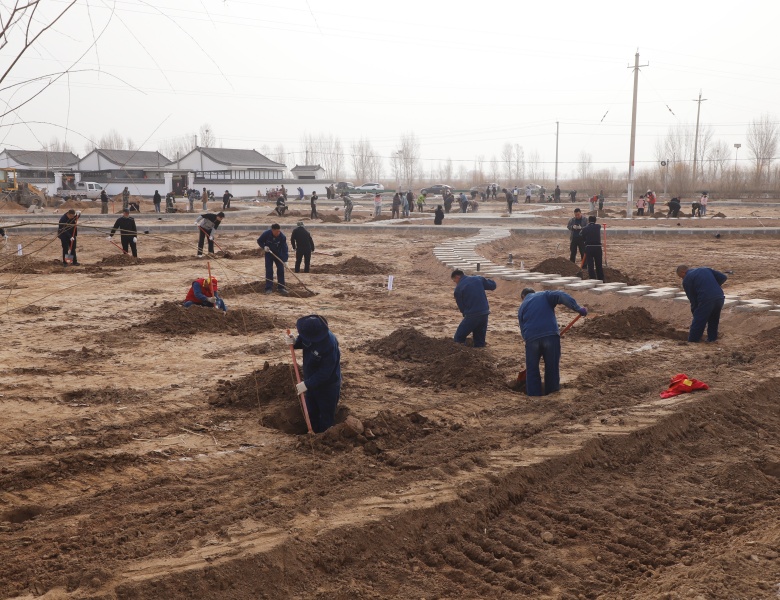 目前,各村村庄、门前及农田林网开沟打点已全面展开,苗木调运及绿化工作紧锣密鼓进行。