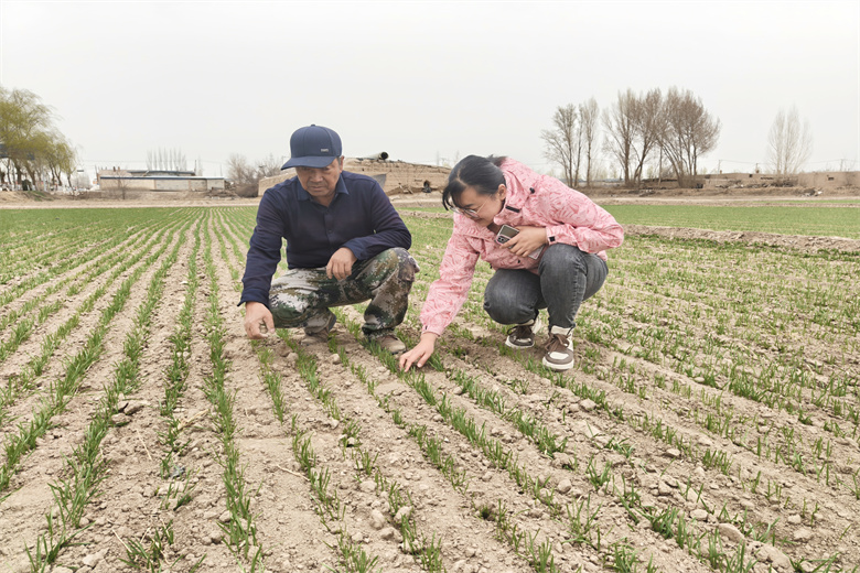 走进合黎镇六二村,站在田埂远眺,连片新绿随风轻摆,一档档麦田整齐排列,麦苗苗齐根壮、生机勃勃。种植户许有伟说道:“今年我种植了3亩小麦,这批小麦的出苗率特别高,长得特别好,目前已经长了7—8公分了。以前种植小麦全凭自身经验,管理也不到位,现在从种到收全程有技术人员陪同指导,小麦的长势格外好,感觉今年丰收在望。”