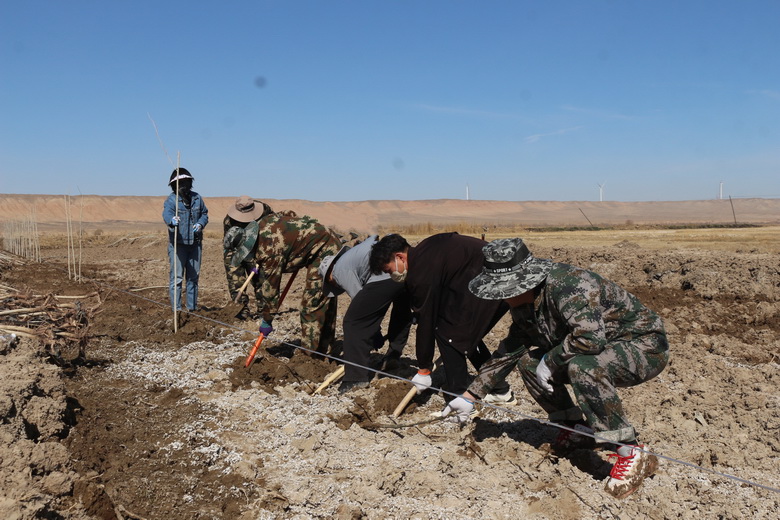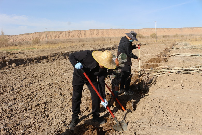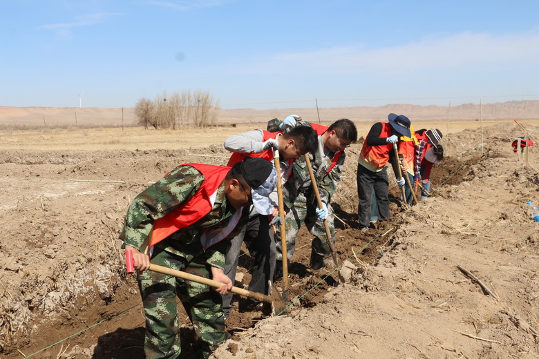 阳光明媚,春风拂面。在植树现场,大家拿着提前准备好的铁锹、十字镐、皮尺、绳子等植树工具,或三人或五人一组,分工协作,干劲十足。挖坑铲土、提苗扶正、覆土培实、浇水灌溉,忙碌的身影与生态的绿色融合在一起,形成了一道亮丽的风景线。