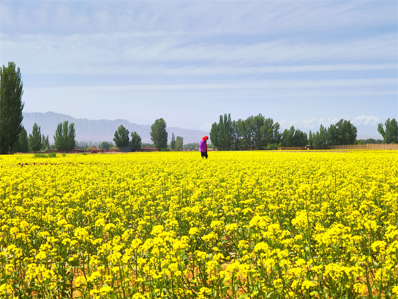 种植大户杜山德今年套种了30亩油菜、10亩孜然,作物的长势都非常喜人。“油菜是和公司签的订单,每公斤13元,加上玉米,每亩地能收入3000元以上。”他的话语满是对丰收的憧憬和对产业发展的信心。为提升农业综合生产能力,骆驼城镇积极探索推广套种模式、麦后复种等高效农业生产模式,最大限度地利用土地资源,提高亩均种植效益,为乡村振兴奠定坚实基础。