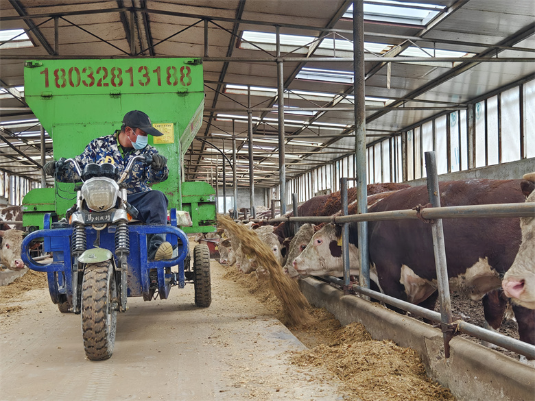 近日,走进巷道镇辉盛养殖场,一排排标准化牛舍鳞次栉比,牛舍里一头头牛犊膘肥体壮,“哞哞”声此起彼伏。工作人员正忙着给牛添料。“我的养殖场现在共有牛1200多头,主要喂的是青储草料和加工饲料,日常人工就用的一两个人。”负责人赵小军介绍道。