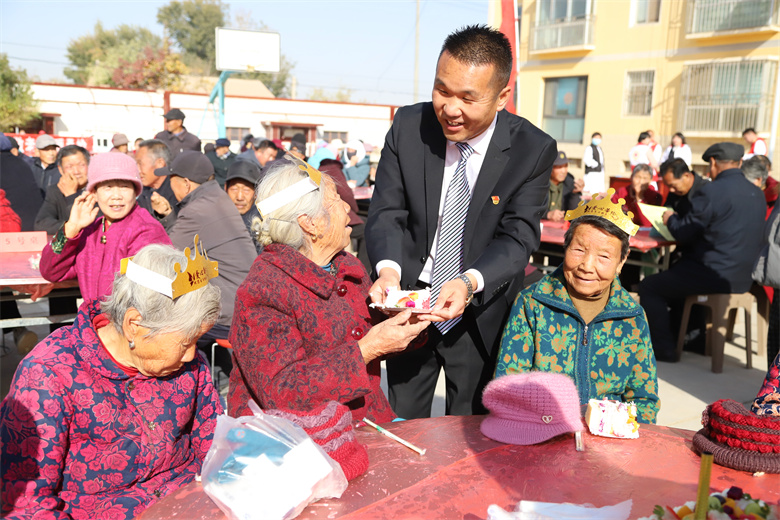 广场上,18 张圆桌整齐摆放,热气腾腾的饭菜香气四溢。这场精心筹备的敬老宴,不仅为老人们准备了符合饮食特点的可口菜肴,更专门为80周岁及以上老人举办了“集体生日会”。当生日蜡烛点亮,全体人员共同唱响生日歌,老人们脸上洋溢着幸福的笑容,现场温馨的氛围感染着每一个人。