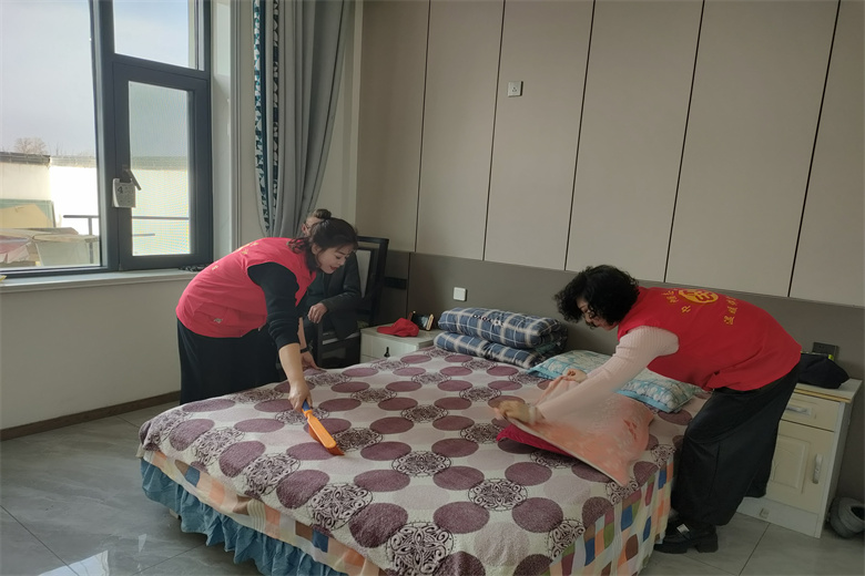 除了情感上的慰藉,“敲门嫂”们更注重解决老人的实际生活问题,她们发扬不怕脏、不怕累的精神,主动帮助老人整理房间、擦拭门窗、归置物品。对于行动不便的老人,“敲门嫂”还细心协助其整理床铺、清理厨房卫生死角,检查家中用电用火安全,排除消防隐患。经过一番忙碌,老人们的家居环境变得焕然一新,整洁有序,年过八旬的刘奶奶拉着志愿者的手说:“谢谢你们一直惦记着我,不仅来看我,还帮我把家里打扫得这么干净,这心里头啊,暖烘烘的。”随后,一次“亲情连线”,更是连起了相隔两地的思念,当老人通过屏幕见到在外打拼的子女,脸上的皱纹也舒展开来,笑意盈盈。