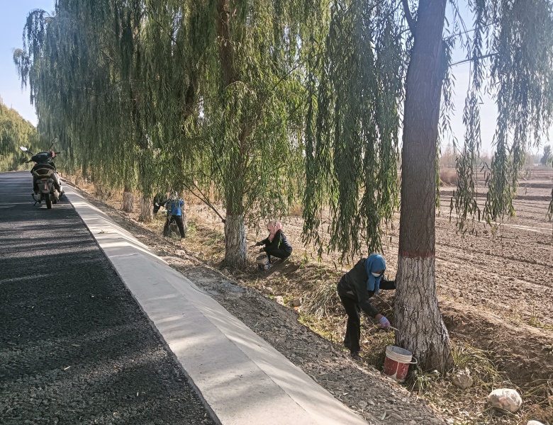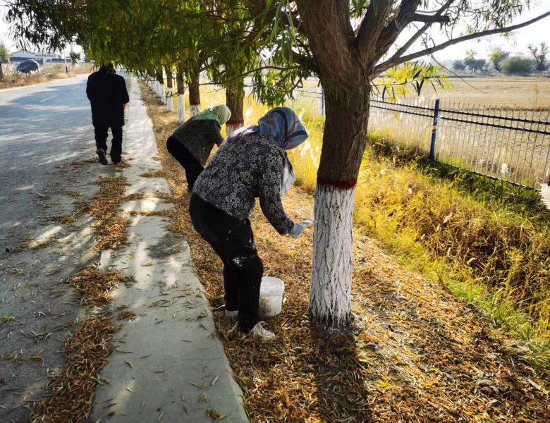 作为冬季绿化养护的“必修课”,此次刷白工作提前制定方案,明确以柳树、榆树等常见行道树、景观树为重点,划定70厘米统一涂白基准线,要求达到“上口平齐、下不露根、涂层均匀”的作业标准。各村作业人员严格按照石灰、硫磺、食盐的科学配比调制涂白剂,这种含天然杀菌成分的制剂既能精准杀灭树皮缝隙中藏匿的蚜虫、红蜘蛛等越冬害虫及虫卵,又能避免对树木生长造成刺激。作业现场,大家分工协作,或调制浆液或持刷涂抹,对树干缝隙、洞孔等关键部位反复涂刷,同时铺设防护垫避免药剂污染地面植被,真正实现“刷白一处、规范一处、见效一处”。