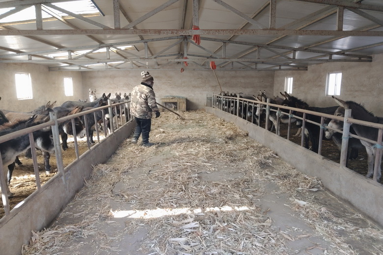 近日,走进盐池村毛驴养殖基地,养殖户李召明正忙碌地打扫驴舍,给毛驴“加餐”,一片繁忙而喜悦的景象。望着小毛驴在驴舍里撒着欢儿,李召明难掩喜悦,分享起他的“致富经”。