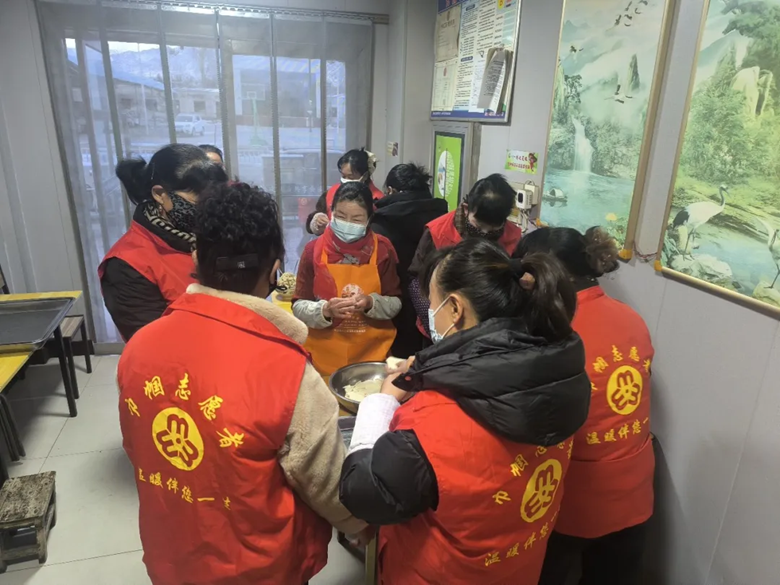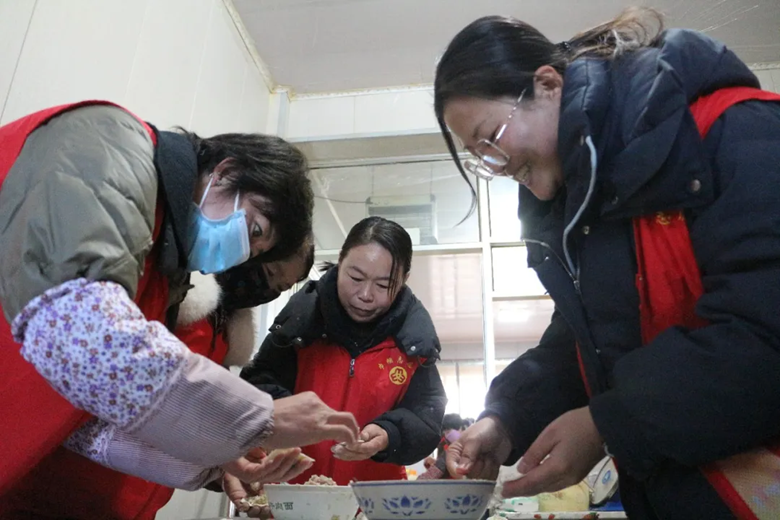 各村新时代文明实践站分会场为更多党员群众传递了节日的体验,志愿者与村民们围聚一堂,有的搭起临时灶台共同煮制饺子,有的组织趣味民俗游戏,让大家在互动中拉近距离;政策宣讲员用通俗易懂的方言,讲解医保报销、养老认证等民生政策,把服务送到群众心坎上。邻里们互相分享自家的拿手菜,孩子们在院中追逐嬉戏,老人们围坐闲谈家常,处处洋溢着“邻里一家亲” 的温馨氛围。志愿者们将煮好的饺子分装好,一户户送往高龄独居老人和困难家庭,热腾腾的饺子不仅暖了胃,更暖了心。