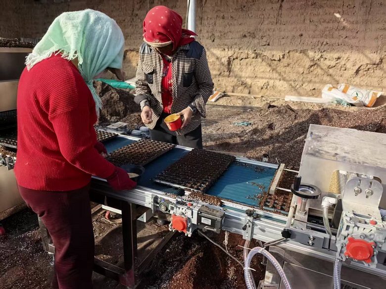 在南华镇胜利村辣椒育苗大棚里,一台台自动化机器正在高效运转,工人们将穴盘放上传送带,添土、挖穴、铺盘、撒种,现场井然有序地进行着育苗作业,为开春的农业生产提供种苗保障。“今年,我们与天泽农业合作共同育苗,这一批辣椒苗订单主要供应县内外市场,数量大概在910万株。”胜利村股份经济合作社负责人王廷说。