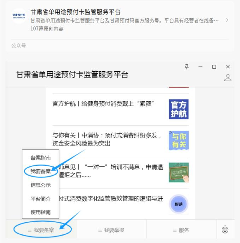 单用途预付消费卡的备案实行全流程在线办理。经营者可使用手机搜索微信公众号“甘肃省单用途预付消费卡监管服务平台”,点击“我要备案”根据提示操作即可。