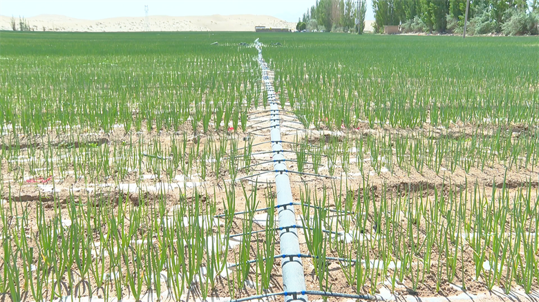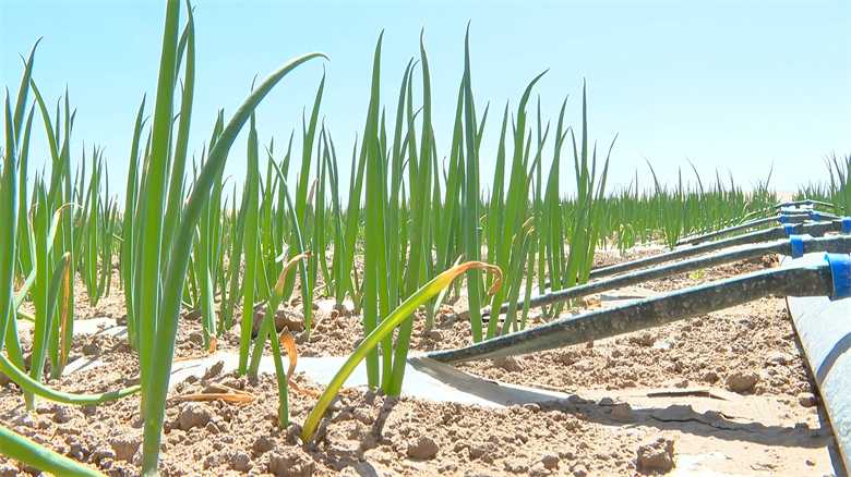 在新坝镇许三湾村,种植大户杨光辉的220亩铁杆大葱长势喜人。他告诉记者,这一切离不开滴灌技术的助力,滴灌不仅大幅降低了用水量和人工成本,对作物生长也起到了关键的促进作用。“我的220亩地铁杆大葱全部用的是滴灌,葱苗的长势特别好,预计在七月底就可以销售完,(预计)节水量比去年能节省20%左右。”新坝镇许三湾村种植大户杨光辉说。
