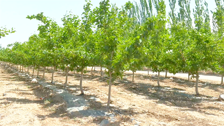 走进甘肃共裕高新农牧科技开发有限公司的林果基地,一排排梨树整齐列队,生机盎然。工人们有序开展灌溉、锄草等作业。公司通过创新应用先进技术,不仅培育出果形饱满、品质上乘的梨子,更显著提升了水资源的利用效率。“梨树下铺设了防草膜、喷施了保湿剂,并采用了膜下的双滴灌技术。这种技术可以减少灌水轮次2到3次,比传统的灌溉节水40%左右。”甘肃共裕高新农牧科技开发有限公司办公室主任陈磊说道。