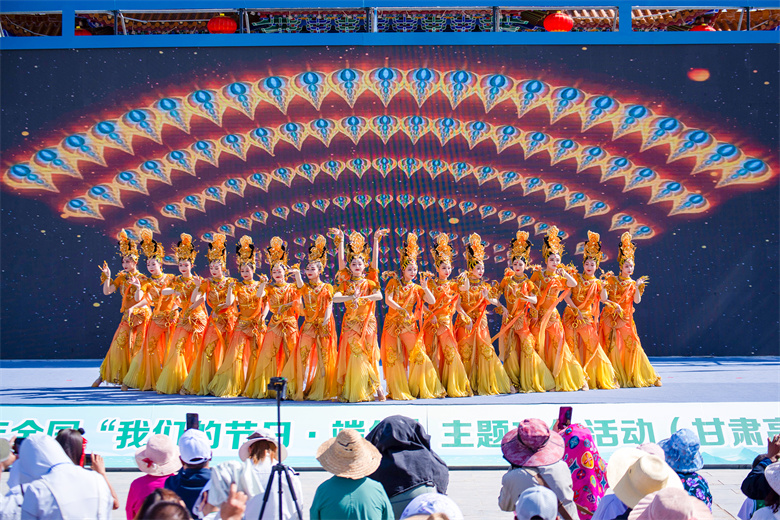 活动现场,伴随着由甘肃省歌舞剧院舞蹈团倾情演绎的舞蹈《丝路华章》铿锵有力的鼓点,现场气氛被瞬间点燃,整场演出渐渐拉开帷幕。舞蹈《大唐华彩》、女子乐坊《江山叠章》等精彩节目依次上演,其中,本土原创音乐《高台情歌》伴随着精彩的舞蹈让观众如痴如醉;诗朗诵《西路军魂》用慷慨激昂的语调,带领大家重温了那段难忘的红色记忆。此外,舞蹈《共此星河》、二重唱《青叶谣》等节目也让观众大呼过瘾。最后,整场演出在歌曲《高台等你来》中走向尾声。