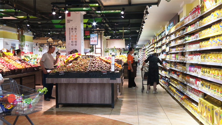 提升购物体验,让消费更舒心。走进新乐超市高台居和家苑店,货架上商品琳琅满目,蔬菜水果色泽鲜亮,熟食窗口香气四溢。超市还专门打造了宽敞明亮的休息区,配备便民设施,让顾客享受贴心服务。“超市里的东西品种特别齐全,我们带娃娃过来买东西也特别方便,价格也实惠,像水果之类的也特别新鲜。”市民兰静说。