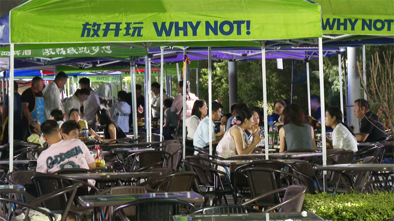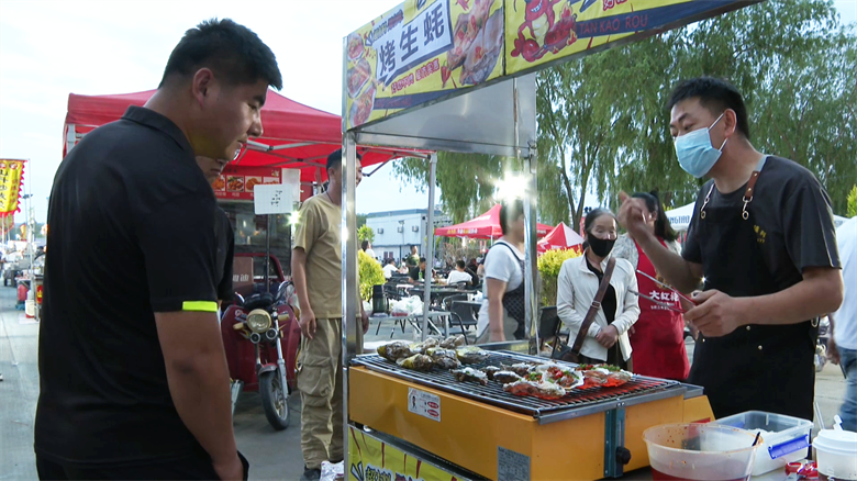 夜幕降临,水之印广场夜市升腾起浓浓的烟火气。麻辣烫、臭豆腐、特色烤串、各色饮品……香气在微风中弥漫,吸引市民下班后前来放松。高台县规范设置210多个外摆摊位,打造美食、娱乐、非遗等多元夜间消费场景。“夜市就在我们的家门口,玩的吃的都有,下班和家人一起逛夜市,感觉特别放松,心情特别美好。”市民刘小蓓说道。