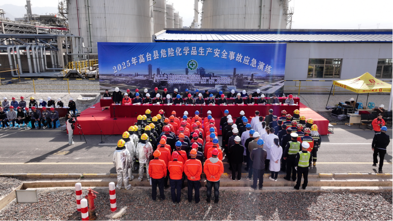 为提升全县危险化学品领域安全管理和突发事故应急救援能力,10月15日,高台县在南华工业园区兰能投(甘肃)能源化工有限公司组织开展了全县危险化学品生产安全事故应急演练。县工业园区管委会分管领导、各镇分管领导、县安防委办有关成员单位负责人、全县危险化学品生产企业等参加了此次活动。