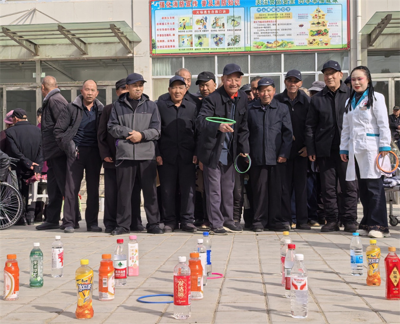 在县养老中心举办的“情暖重阳 关爱相伴”主题活动现场,百余名老人欢聚一堂。文艺演出精彩不断,既有展现新时代活力的舞蹈《幸福中国一起走》,也有旋律悠扬、寄托美好祝愿的吉他演奏《如愿》;高亢激越的秦腔联唱《红灯记》韵味醇厚,引发阵阵喝彩;器乐合奏《我和我的祖国》更是点燃全场热情,掌声与旋律交织回荡。随后的“夹弹珠”“套圈”等趣味活动,让老人们踊跃参与,笑声不断。