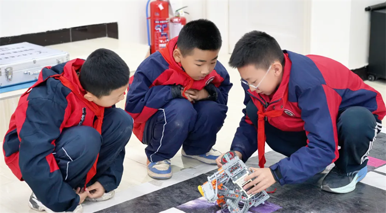 在社团课上,孙延浩正向同学们自豪地展示他的超级轨道机器人。“以前总觉得编程课是城里学校的‘专利’,现在我们学校也有了,我就立即加入了编程社团,每次设计都感觉特别有成就感。”孙延浩开心地说道。