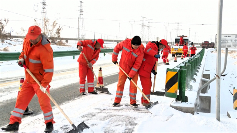 高速公路保畅同样高效有序。临清综合养护中心根据路网结构和除雪需要,在元山子站设置前置应急储备点,提前储备防滑料10吨,大幅缩短物资调配时间。除雪作业采取梯队协同推进模式,并安排压车人员全程跟进,实时调整除雪设备作业角度与车速,确保除雪无盲区、无遗漏。截至目前,该中心已累计投入保畅人员93人次,出动巡查除雪车辆32台次,撒布融雪剂69吨。