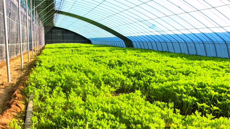 冬日的高台县,室外气温走低,但巷道镇红联村的蔬菜大棚里却暖意融融。嫩绿的油菜、清香的茼蒿长势正旺,村民们忙着管护。今年,这片正在建设的40座高标准钢架大棚,成了周边几个村共同的“聚宝盆”。