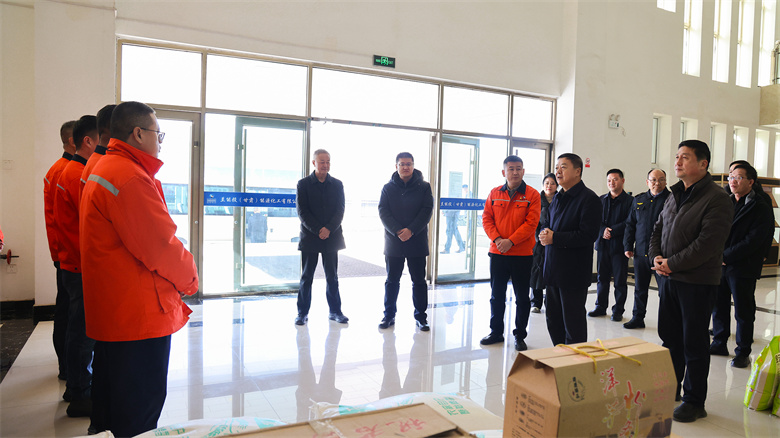 在兰能投(甘肃)能源化工有限公司、甘肃首途新能源发展有限公司,张龙、武汉章、杨红光向坚守岗位的企业员工致以新春的美好祝福,勉励企业在新的一年积极抢抓发展机遇,鼓足干劲、创新发展,乘势而上、再创辉煌,为高台经济社会高质量发展作出新的更大贡献。叮嘱企业强化安全意识,规范操作流程,切实提升安全管理水平,筑牢安全防线。相关部门要真情实意服务企业,强化要素保障,落实惠企政策,用拼抢精神全力推动一季度良好开局。