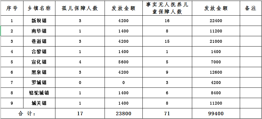 现将2023年孤儿及事实无人抚养儿童基本生活补贴发放汇总表(7月份)公开如下: