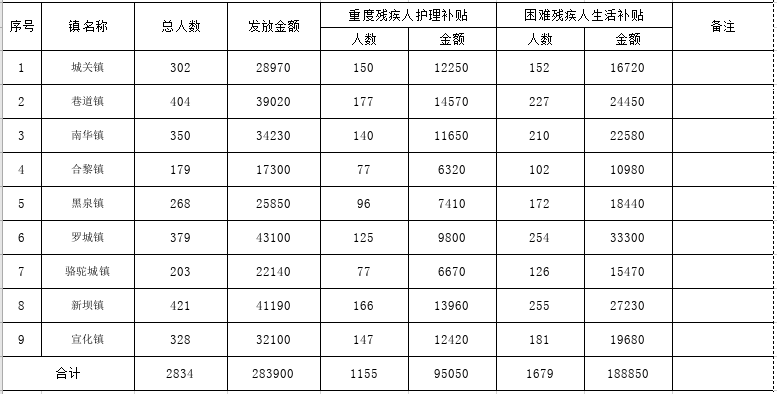 现将2023年残疾人两项补贴资金发放汇总表(11月份)公开如下: