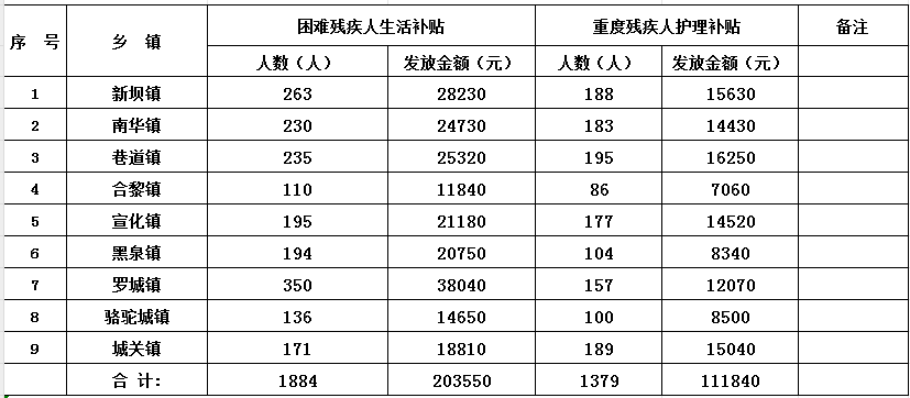 现将2025年高台县残疾人“两项补贴”资金发放汇总表公示如下: