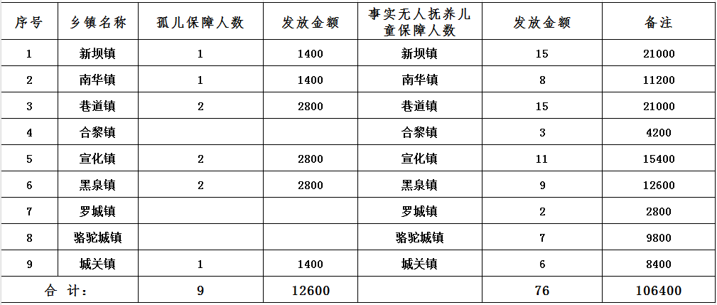 现将2026年高台县孤儿及事实无人抚养儿童基本生活补贴资金发放汇总表公示如下: