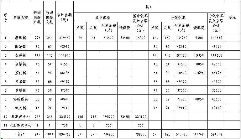 现将2026年高台县城乡特困供养资金发放汇总表公示如下:
