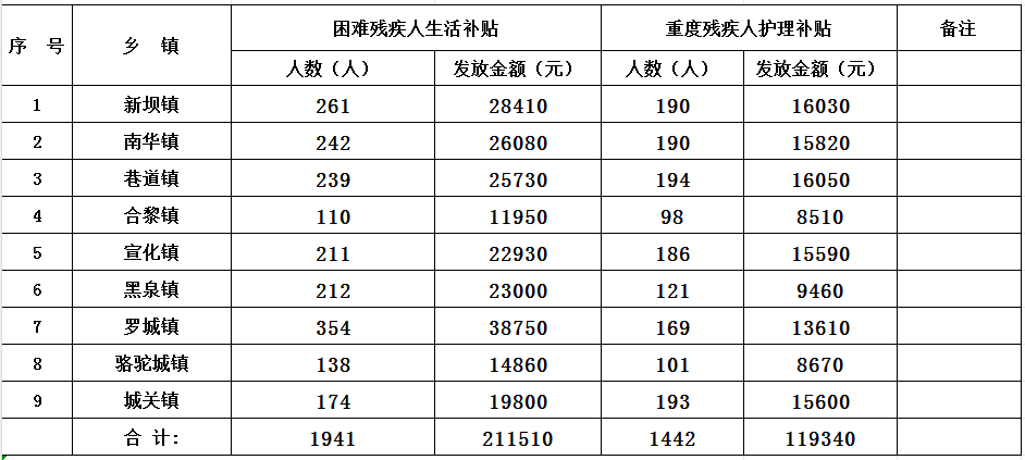 现将2026年高台县残疾人“两项补贴”资金发放汇总表公示如下:
