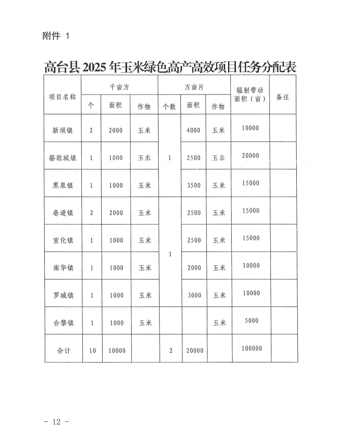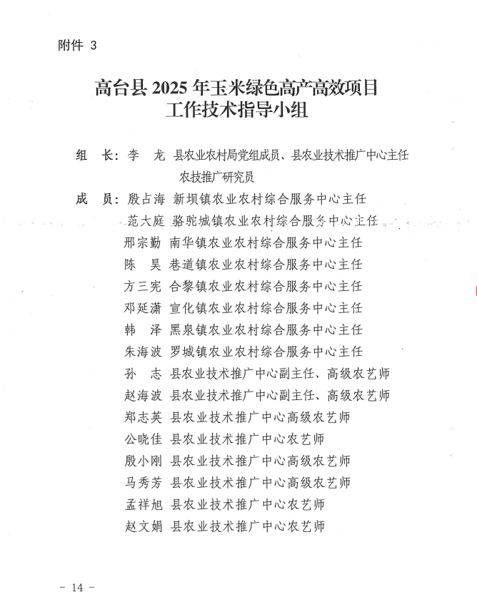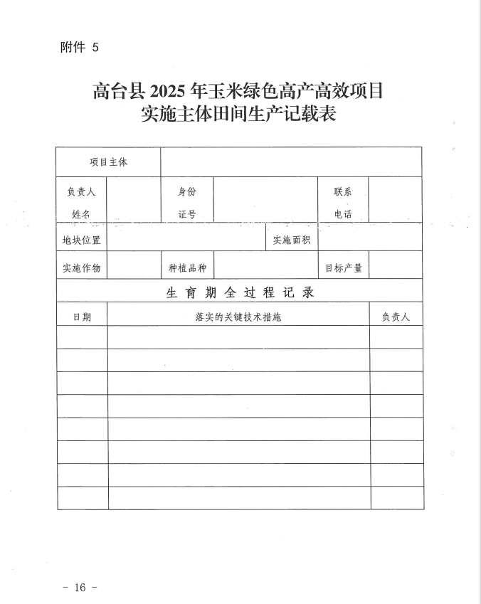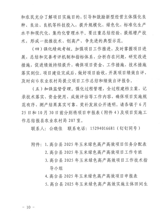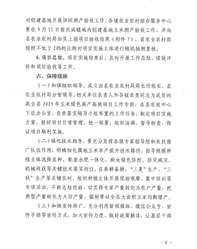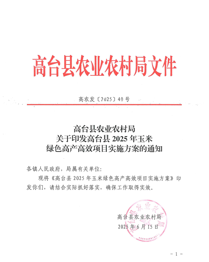 高台县农业农村局关于印发高台县2025年玉米绿色高产高效项目实施方案的通知