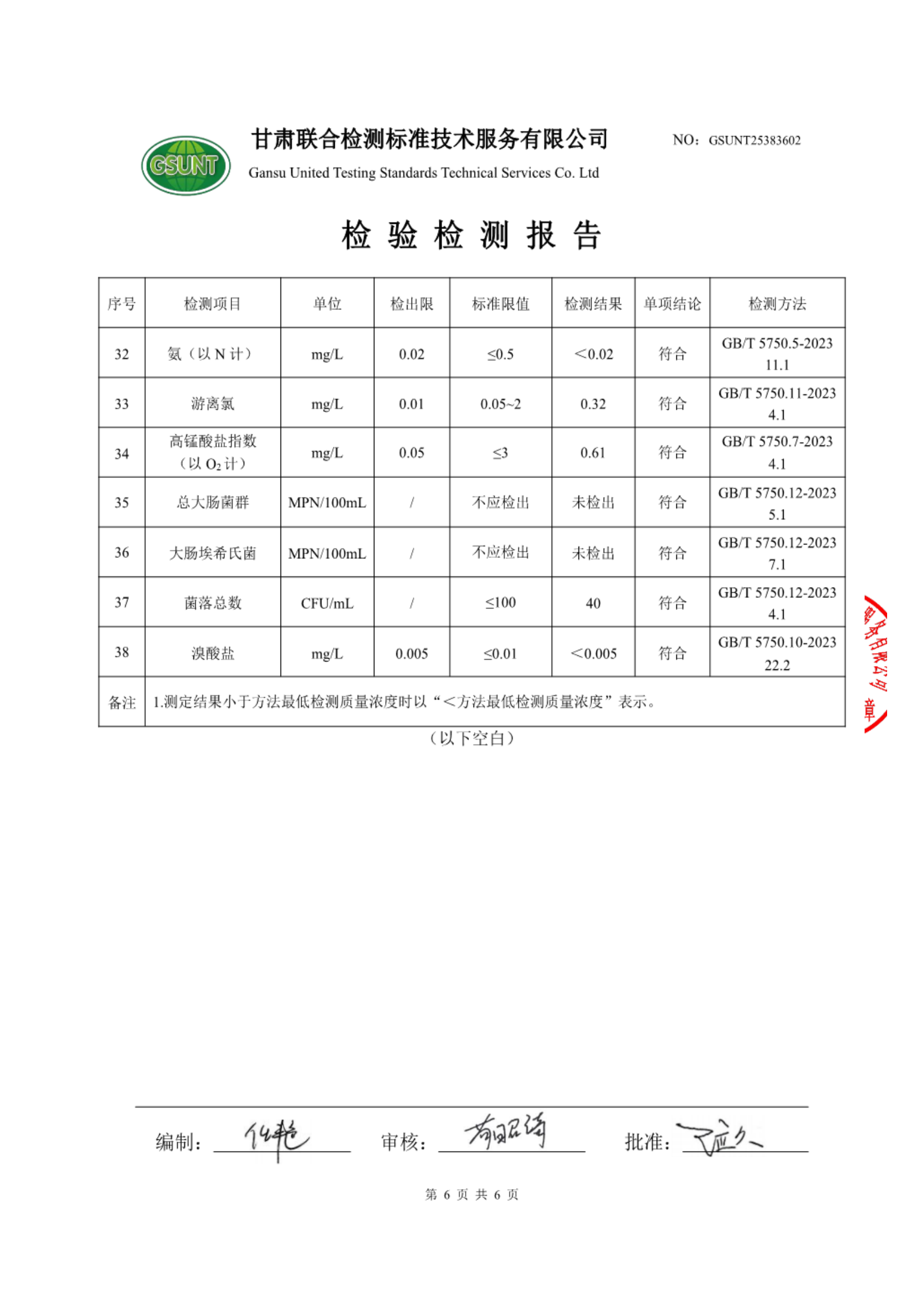 高台县城区饮用水2025年9月份水质(末梢水)检测报告