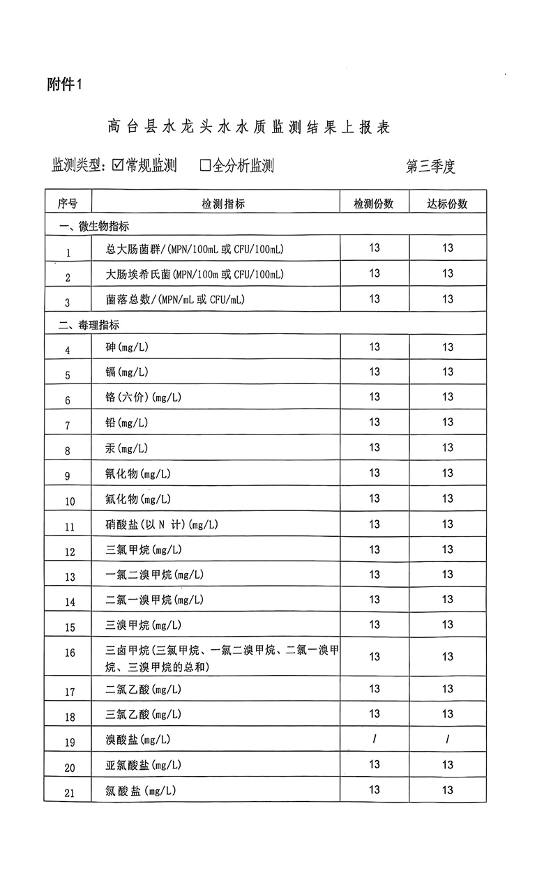 高台县2025年第三季度疾控机构生活饮用水水质监测情况报告