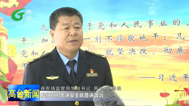 高台县市场监管局党组书记、局长 赵思松:“我们将树牢‘讲安全就是讲政治’‘保安全就是保民生’的意识,严守‘四大安全’底线,确保‘四个最严’要求落到实处。一是严守食品安全底线。深入开展创建国家食品安全示范城市工作,加大日常监督检查力度,着力加强网络餐饮、学校食堂、农村集体聚餐等重点领域整治力度,强化重点食品监督抽检,确保广大群众饮食安全。二是强化药品安全监管。推行分类监管,加强对特殊药品、冷藏冷冻药品、国家集采中选药品、生物制品、中药饮片、植入类医疗器械等高风险品种的监督检查,严防严控药品医疗器械安全风险隐患。三是严格特种设备安全监管。深入推进安全生产‘治本攻坚’三年行动,重点抓好工业企业、气体充装单位在用压力容器、起重机械、锅炉及气瓶等流动式压力容器的安全监管,确保全县特种设备安全平稳运行。四是保障产品质量安全。持续加强重点工业品、消费品质量监督,组织开展儿童用品、农资产品、消防产品、危化品等重点领域产品质量安全隐患排查,全面防范和化解风险隐患,全力为人民群众生命健康安全保驾护航。”